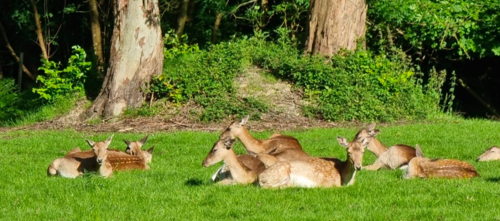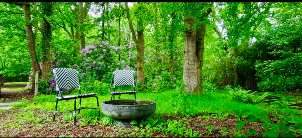 The gardens are a peaceful and secluded 2 acres and are grazed by deer with many beautiful trees creating wooded areas. The house has a long approach off a private road.