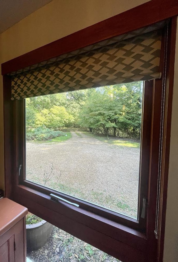 When I moved to our new home in East Sussex I had a lot of big windows to dress and not a lot of money. After living there for a while I decided that the best treatment would be roller blinds in terms of allowing in the most light and best views of surrounding nature. Off-the-shelf roller blinds can be limited in choice of Fabric but I know a company who can make them from your choice of designer fabric if price is not an issue.