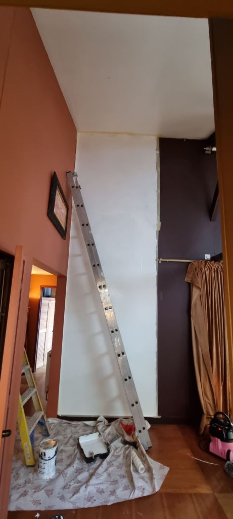 Preparing our tallest wall for a mural Becky is going to paint next week.