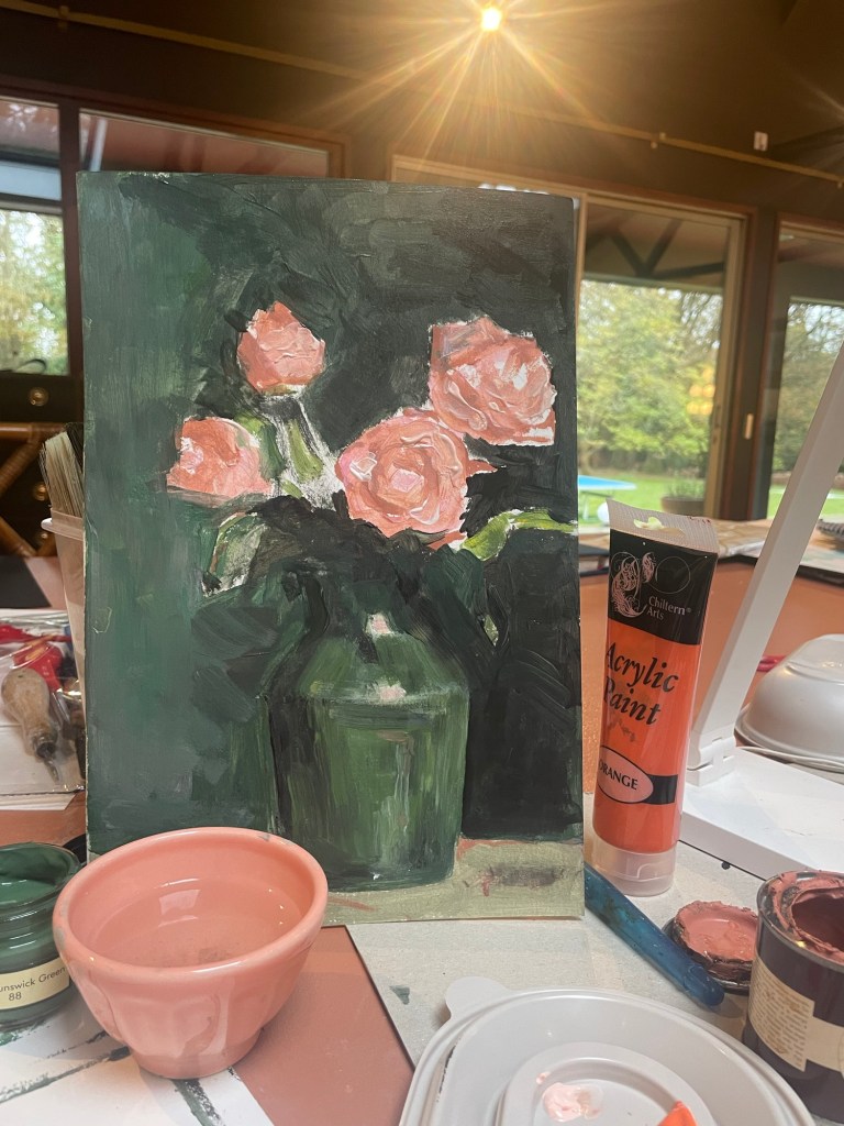Ok, So I’ll let you into a little secret, I’m not a big fan of flower paintings HOWEVER, lots of people like this subject and it’s a good discipline in observation. For this reason I’m practicing my flower painting techniques. It’s been a while! I’m using acrylics on paper.